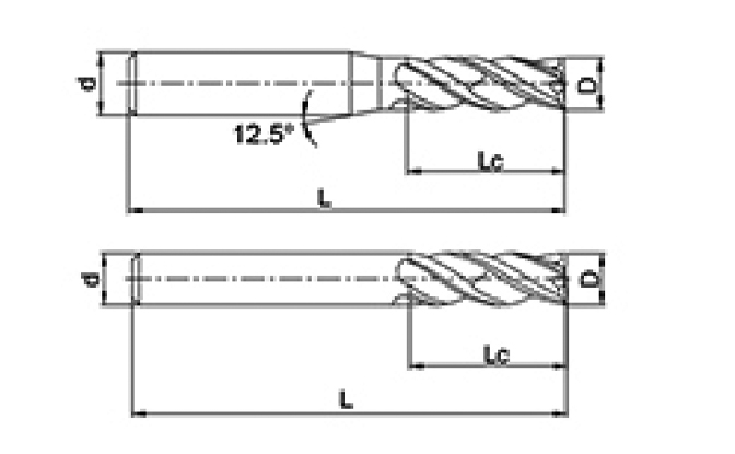 | Níl. | Trastomhas D | Fad an fhliúit Lc | Fad Foriomlán L | Shank Dia d | Comhaireamh Blade F |