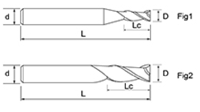 | Níl. | Trastomhas D | Fad an fhliúit Lc | Fad Foriomlán L | Shank Dia d | Comhaireamh Blade F |