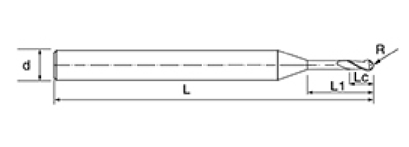 | Níl. | Trastomhas D | R Uillinn R | Fad an fhliúit Lc | Fad Éifeachtach L1 | Fad Foriomlán L | Shank Dia d | Comhaireamh Blade F |