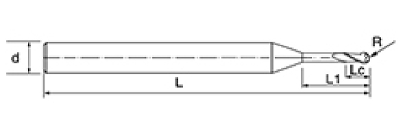 | Níl. | Trastomhas D | R Uillinn R | Fad an fhliúit Lc | Fad Éifeachtach L1 | Fad Foriomlán L | Shank Dia d | Comhaireamh Blade F |