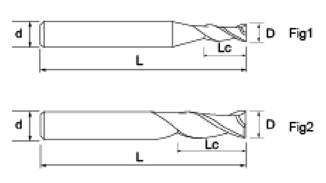 | Níl. | Trastomhas D | Fad an fhliúit Lc | Fad Foriomlán L | Shank Dia d | Comhaireamh Blade F |