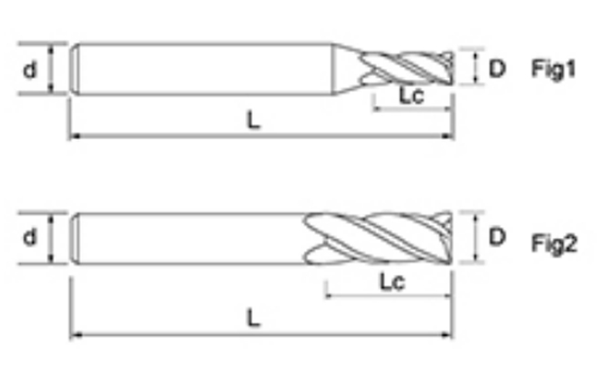 | Níl. | Trastomhas D | Fad an fhliúit Lc | Fad Foriomlán L | Shank Dia d | Comhaireamh Blade F |