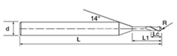 | Níl. | Trastomhas D | R Uillinn R | Fad an fhliúit Lc | Fad Éifeachtach L1 | Fad Foriomlán L | Shank Dia d | Comhaireamh Blade F |