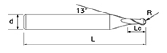 | Níl. | Trastomhas D | R Uillinn R | Fad an fhliúit Lc | Fad Foriomlán L | Shank Dia d | Comhaireamh Blade F |