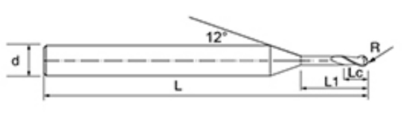 | Níl. | Trastomhas D | R Uillinn R | Fad an fhliúit Lc | Fad Éifeachtach L1 | Fad Foriomlán L | Shank Dia d | Comhaireamh Blade F |
